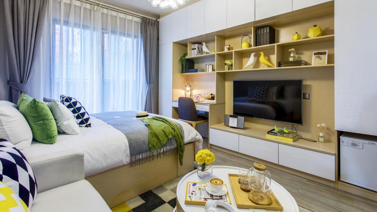 该项目位于广州市天河区软件园区,主要针对20-40左右的年轻人,主要户型为直通间,面积39㎡,世联红璞公寓将其打造成年轻时尚风格,家电齐全,拎包即可入住